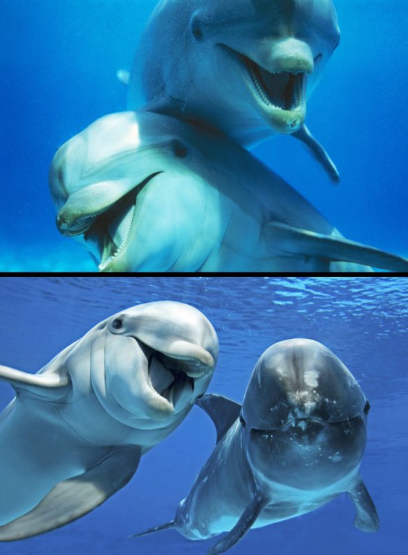 Дельфіни, щоб зачарувати самку, здійснюють любовний танець: плавають поруч з обраницею, торкаючись до неї плавниками. Якщо самець відчуває, що йому відповідають взаємністю, він починає злегка прикушувати дамі плавники. А деякі види дельфінів під час залицяння роблять обраницям подарунки: піднімають з дна водорості, уламки коралів або шматочки морських губок.