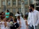 Після конкурсної програми, наречені рушили на автомобілях на площу Народну, де на них чекали маленькі дівчата й хлопчики, які мали можливість відчути себе "молодятами".