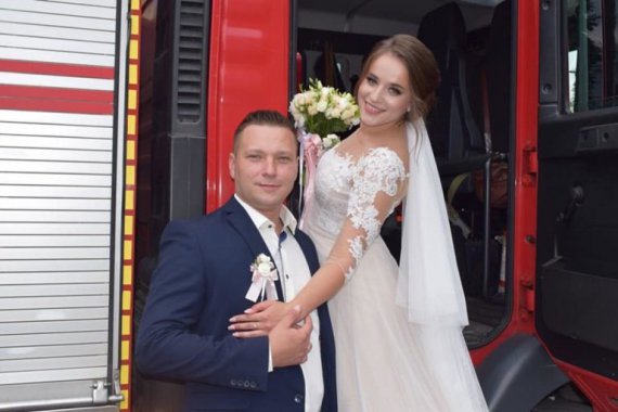 У цей святковий для пари день, рятувальники організували їм приємний сюрприз - провести урочисту частину свята з пожежним автомобілем Андрія.