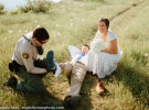 Молодята Джонні і Лора Бенсон із Форт-Коллінс, Колорадо, США. Їхня весільна фотосесія проходила недалеко від водосховища Хорсетут. Пара відійшла на 15 метрів від стоянки та просто йшла по дорозі, як раптом Джонні відчув удар в гомілку — його вкусила гримуча змія, яка зачаїлася у траві, пише 4tololo.