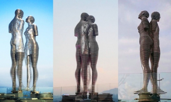 Грузинський скульптор Тамара Квесітадзе розповіла історію кохання Ніно і Алі і втілила їх у дивовижні 8-метрові статуї.