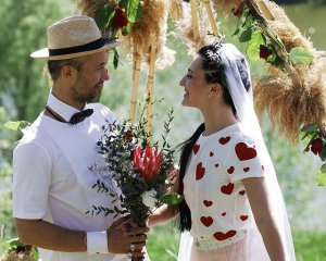 Сергій та Сніжана Бабкіни вирішили повторно зіграти весілля, проте, уже в не в такому офіційному стилі. Замість білої сукні та класичного костюму зіркові наречені обрали для себе стильні шорти та футболки. Сергій доповнив образ солом'яним капелюхом, а Сніжана вирішила прикрасити свою голову традиційною фатою.