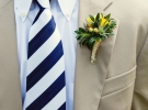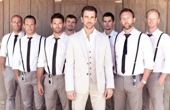 Сьогодні дуже актуально підкреслювати класичні чоловічі костюми яскравими аксесуарами, підібраними в тон до букету нареченої. Наприклад, дуже гарно виглядатиме бутоньєрка з таких же квітів як букет, або хустинка в тон до нього. Також вдало доповнити образ допоможе яскрава або в ніжних тонах краватка чи смокінг.