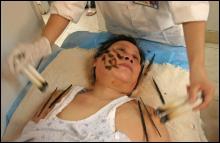 Українські рефлексотерапевти екзотичних ліків не роблять, бо коштують вони недешево. Користуються місцевими аналогами — зміїною та бджолиною отрутою.