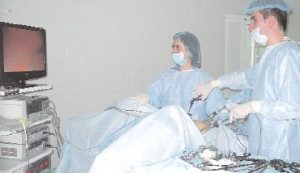Лапароскопію роблять, вводячи хірургічні інструменти через маленькі надрізи в черевну порожнину хворого. Зображення внутрішніх органів передають на великий монітор. Щоб було краще видно, живіт ”надувають” газом