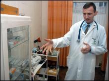 У кабінеті сімейного лікаря є всього потроху: у шафі — ліки для невідкладної допомоги, на полиці — великий шприц для промивання вух, як у "Кавказькій полонянці", на стіні — плакат для перевірки зору, в кутку — кушетка, накрита простирадлом зі штампом "МОЗ України".
