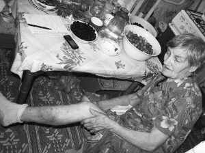 — Рана на правій нозі не хотіла заживати. Тоді з лівої мені відрізали шматок шкіри, зробили з нього сіточку та приживили. За пару місяців почала наростати під раною нова шкіра, — говорить Ганна Миколаївна. Кульгає, нога досі болить. На ринок ходить лише людними вулицями.