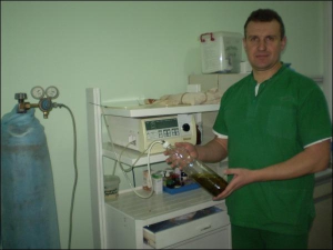 — Озон допомагає у дев"яноста відсотках хронічних захворювань, — переконує головний лікар Сергій Данилків, 44 роки. — Цей газ з"їдає, як пес, усі цукри, недоокислені продукти в організмі людини. А натомість доносить до тканин кисень.
