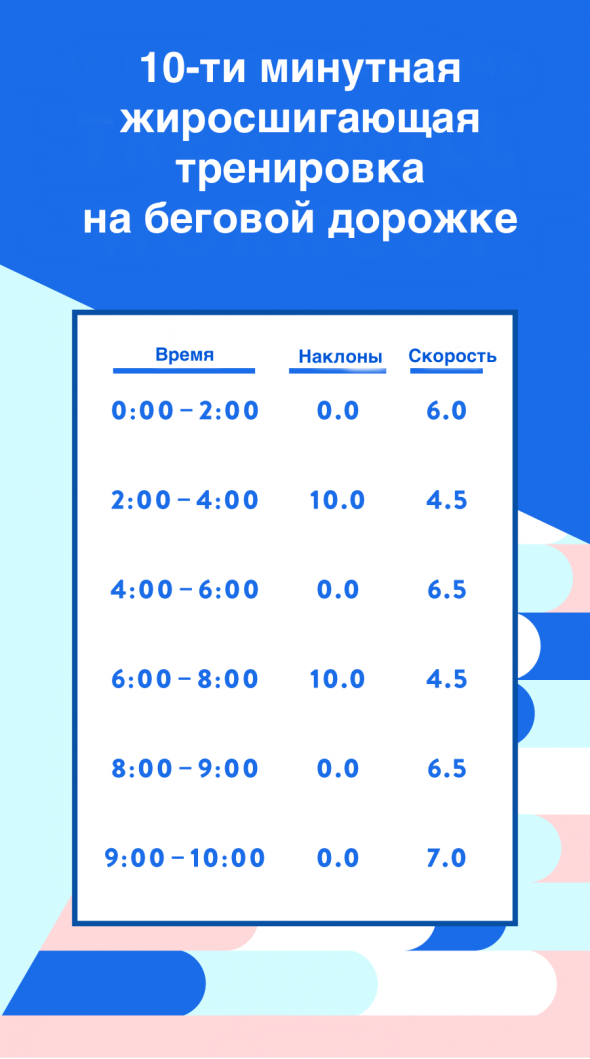 Дане тренування досить просте - в ньому немає необхідності в регулюванні налаштувань бігової доріжки кожні 30 секунд. Розроблене воно було творцями Shred415 Бонні Микелі і Трейсі Ремер. Вправи поєднують в собі дві хвилини ходьби різного рівня складності, плюс міні - спринт у кінці. Особливість тренування: більш тривалі навантаження і зміна швидкості і рівня нахилу. Все це для того, щоб підняти частоту серцевих скорочень, спалити більше калорій, а також поліпшити вашу витривалість.