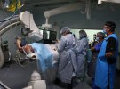 Сигнали апаратів стали звучати частіше. Медики коротко обговорють між собою деталі англійською. Хірург періодично маніпулює столом, спостерігає за моніторами.