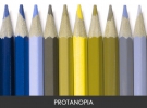 Протанопія (сліпі на червоний колір). Червоний колір сприймається темнішим, змішується з темно-зеленими, темно-коричневим, а зелений - зі світло-сірим, світло-жовтим, світло-коричневим).