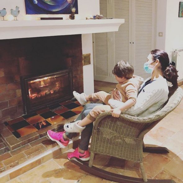 Куриленко до публікації додала світлину, на якій вона із сином сидить біля каміну на кріслі-качалці й дивиться на вогонь.