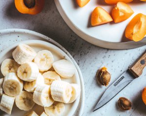 Мовиться про банан. По-перше, цей фрукт багатий на такий мікроелемент як калій. Нормальний рівень калію чудово впливає на здоров'я серця та артеріальний тиск. Допомагає знизити ризик інсультів і серцевих захворювань.У невеликому банані міститься близько 422 мл калію, а це приблизно 9% від рекомендованої норми споживання.