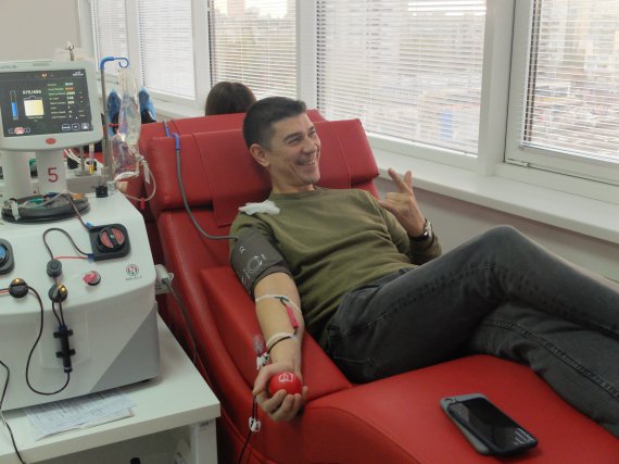 - У наказі про донорство крові та її компонентів прописано, що має бути солодкий чай, тобто 30 грамів цукру на склянку, це 3 столові ложки, щоб глюкоза була хороша. Печиво також краще поїсти, бо якщо зранку донор забув поснідати - голодним на донацію краще не лягати, організм може функціонувати непотрібним чином, наприклад, впасти тиск, - продовжує Хіоаре.
