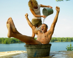 Обливання холодною водою перед виходом на роботу покращує кровообіг, виганяє депресію та захищає організм від радіоактивного опромінювання.
