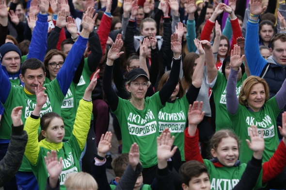 У Маріїнському парку у Києві провели фітнес-тренування за участі в.о.міністра охорони здоров'я Уляни Супрун. Акція "Активуй здоров'я" приурочена Всесвітньому дню здоров'я. Вправи виконували під керівництвом тренера Аніти Луценко.