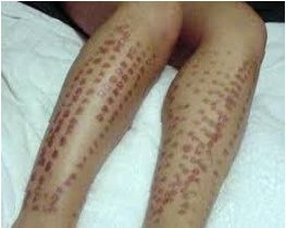 Набряк і почервоніння шкіри в епільованій зоні. Дана алергічна реакція може утворитися через реакцію організму на знеболювальні засоби, що використовуються під час процедури. Також таке побічне явище виникає у вигляді реакції на професійні засоби для догляду за шкірою, які клієнти використовують після лазерної епіляції самостійно, не дотримуючись рекомендацій лікаря.