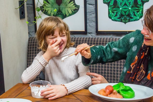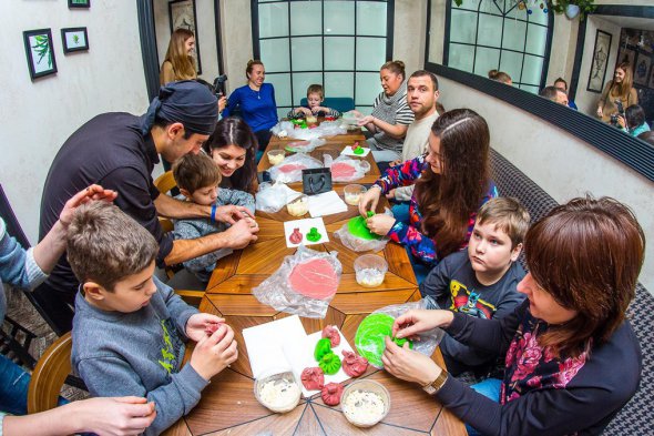 Днями 60 дітей з аутизмом, що є учасниками проекту Kids Autism Games і не тільки, пройшли чергове заняття з соціалізації за допомогою фуд-терапії. Малечу зібрали в грузинському ресторані, щоб ті "по-різдвянськи" покуховарили – діти власноруч робили хінкалі. Готували все як справжні кухарі - спочатку тісто, потім фарш. Щоб хінкалі були кольоровими, в тісто додавали натуральні барвники: шпинат, щоб отримати зелений колір, та буряк, щоб тісто було червоним. У фарш додавали бульйон, якщо хінкалі з м'ясом. Або молоко, якщо з сиром.