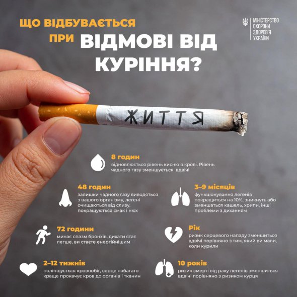 МОЗ повідомило, що відбувається при відмові від куріння.