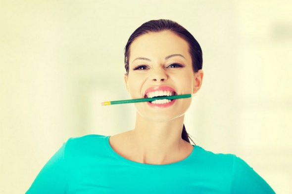 Потрібно обдурити мозок. Коли ми тримаємо олівець в зубах, включаються м'язи, які беруть участь і в усмішці. Це посилає сигнал в мозок, він починає виробляти ендорфіни і відповідно настрій поліпшується.