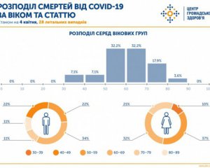 Станом на 4 квітня 86% з 28 людей, що померли від COVID-19 в Україні, мали вік старше 50-ти років.