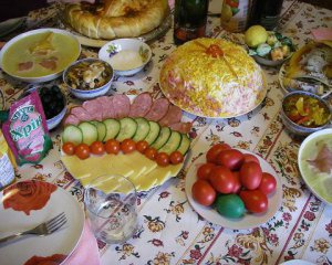 Не вибирайте забагато солодких і жирних страв. Важкими для шлунку є страви, багаті на білок, як торти з кремами. Їх споживання варто обмежувати. Краще з'їжте пісного м'яса з хроном та гірчицею. Гострі приправи покращують травлення.