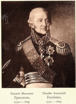 На 55-річчя генерала Тимофія Тутолміна російська імператриця Катерина ІІ 1796-го подарувала йому волинське містечко Торчин із шістьма навколишніми селами. До поділу Польщі воно належало католицькому біскупові. Цариця роздаровувала новоприєднані до Російської імперії території своїм наближеним. А до генерала Тутолміна була прихильна ще з 1774 року, коли той перший завдав удару по війську Омеляна Пугачова.