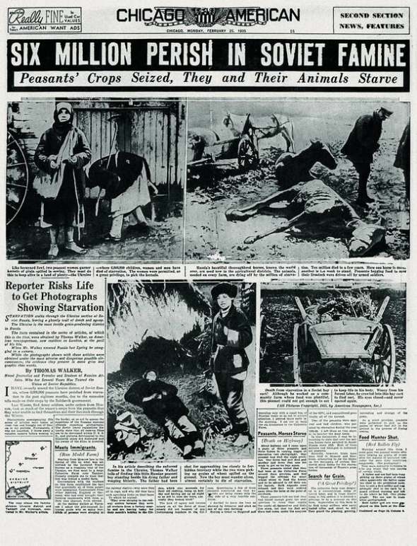 У грудні 1935-го в Chicago American з'являються кілька статей Томаса Волкера. "Сім мільйонів загинуло під час радянського голоду" – заявляє автор. "Голод, розпука, смерть в українській агонії", – інший заголовок. Пише про свою мандрівку Україною весною 1934-го. Джонс не бачив мертвих, а Волкер розповідає про голодування й смерті. Також подає фотографії.