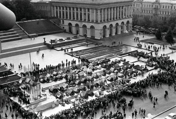1992, 6–23 жовтня – на майдані Незалежності студенти знову розбивають наметове містечко й оголошують голодування. Вимагають відставки уряду та проведення реформ. Акція завершується перемогою – відставкою тодішнього прем'єр-міністра Вітольда Фокіна. Замість нього Кабмін очолює Леонід Кучма.
