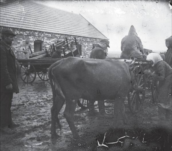 При розкуркуленні Желізнякового земляка Олексія Дубини до колгоспу задумали перевезти його клуню - "амбар" - цілий, не розбираючи. "Установили его на шестеро саней и в упряжке восьмеро коней, - пише Желізняк на звороті знімка. - С песнями выехали со двора, повезли на Удачное. Но я чувствовал, что благополучно они не доедут и пошел вслед за ними с фотоаппаратом. Как за хутором катастрофа. Затрещал и рассыпался амбар и попадали сверху сидящие на амбаре. По счастью никто серьезно не пострадал, а только с амбара собрали уже дрова на топливо".