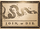 9 травня 1754 року тижневик Pennsylvania Gazette опублікував малюнок дипломата Бенджаміна Франкліна: розрубана змія і напис Join or die – "Приєднуйся або помри". Біля кожної з восьми частин були вказані ініціали британських колоній в Америці, як-от NJ – Нью-Джерсі, або М –Массачусетс-Бей. Таким чином автор закликав колонії дати відсіч французам, які в союзі з індіанськими племенами хотіли відвоювати ці землі у Британії. Так звана Франко-індіанська війна тривала сім років і закінчилася для Франції поразкою. Малюнок Франкліна вважають першою американською карикатурою