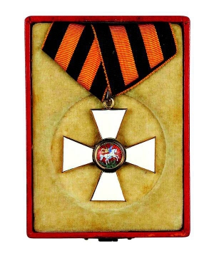 7 грудня 1769 року російська імператриця Катерина ІІ (1762–1796) заснувала "Императорский Военный орден Святого великомученика и Победоносца Георгия". Нагорода у формі хреста, до нього додається стрічка з трьох чорних і двох жовтих смуг. На думку Катерини ІІ, ці кольори символізують порох і вогонь. За іншою версією, стрічка повторювала кольори герба Російської імперії: чорний орел на золотому щиті.