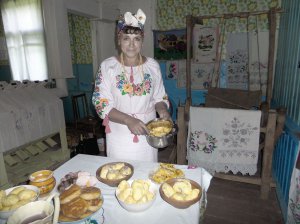 Каже, що в них млинців не пекли. Робили великі оладки на дріжджах, молоці й яйцях. А найбільше готували пухкі й м'які вареники із солоним сиром, поливали їх маслом і сметаною. До цього примовляли: "Як молодим бував, то 40 вареників їдав. Тепер хамелю-хамелю, та насилу й п'ять умелю".