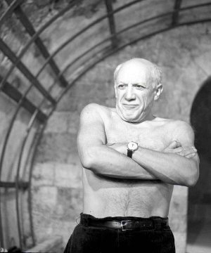 Для всього світу Пікассо — милий чоловік, і його всі обожнюють. З чужими він уважний, гуляє в саду, зриває лимони. Дарує малюнок перукарю, кілька картин — кравцеві, пише присвяту своєму собаці на тарілці. Малює чужих дітей, рибалок, свою домогосподарку, котів, птахів, цибулю і глечики.