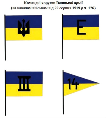 7. Жовтий (золотий) і синій кольори використовувалися на гербі Руського королівства XIV століття. Вони також вживалися на гербах руських земель, князів, шляхти і міст середньовіччя і раннього нового часу.