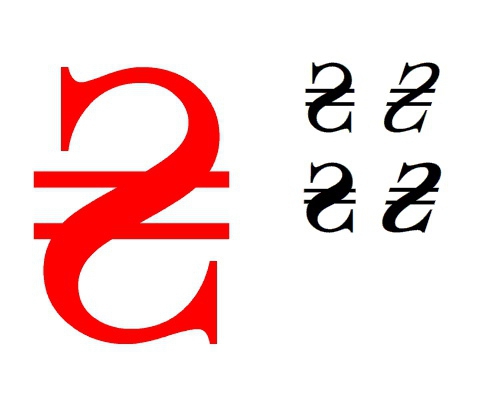 Символ гривні практично ідентичний символу давньоримської грошової одиниці - дімідіа (половини) секстули. Різниця лише в кількості горизонтальних рисочок: у знака гривні їх дві, у давньоримської одиниці ваги - одна.
