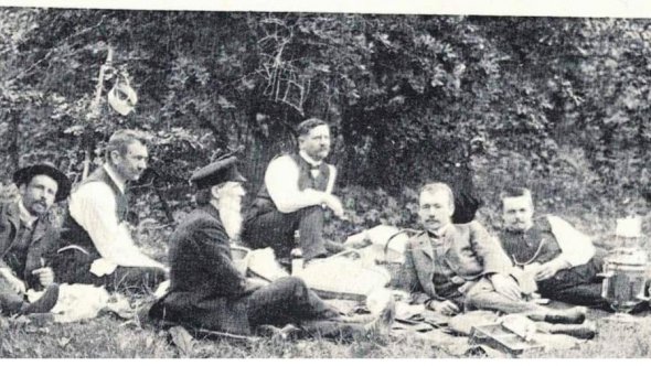 На першому знімку відпочивають жителі колонії німців-менонітів Хортиця. На другому - педагоги німецької школи Центршуле.