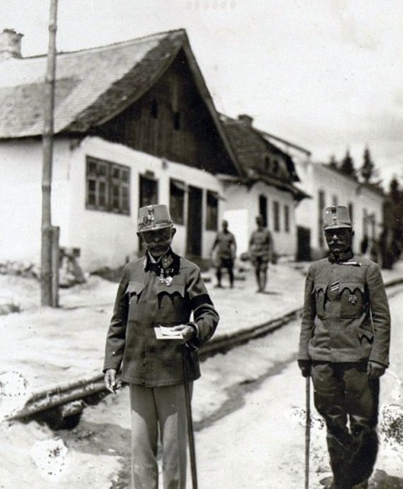 Фотографії показують солдат австро-угорської армії на території села Поморяни та забудову тогочасного села.