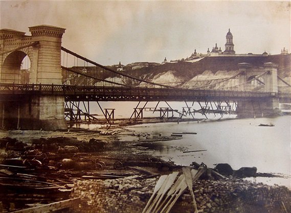 Серед перших фотографів, які працювали в українській столиці, був англієць Джон Борн 1853 року. У його об'єктив потрапило будівництво Ланцюгового мосту через Дніпро. Його зводив англійський інженер Чарльз де Віньоль. Він і попросив Джона Борна зробити фотозвіт виконаних робіт. Світлину мосту вважають найдавнішою, зробленою у Києві. Альбом київських фотографій Джона Борна залишився в Україні і зберігається у фондових сховищах Національного музею історії України.