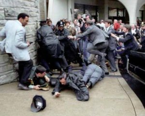 Президент США готувався виголосити промову в готелі "Хілтон" у Вашингтоні. Він перебував за кілька хвилин їзди від Білого дому. Після виступу Рейган вийшов з під'їзду для почесних гостей і попрямував до машини. Ліворуч від президента зібралися журналісти, телевізійні оператори і роззяви. 25-річний Джон Хінклі стояв серед репортерів. Він вистрілив шість разів у президента, поранивши його в груди. Вбив трьох його супроводжуючих - прес-секретаря, охоронця і поліцейського. Поранений у ліву легеню, 70-річний Рейган був доставлений у лікарню.