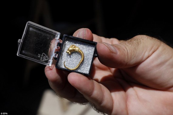 Прикраса скручена із золотих ниток. Зображує голову тварини з рогами, оленя чи антилопи, повідомляє "Урядовий кур'єр".