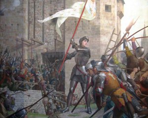 Жанна д'Арк увійшла 29 квітня 1429 року в обложене англійцями французьке місто Орлеан. Щоб зайти через мури – розбиває зі своїм невеликим загоном ворогів біля західних міських стін.