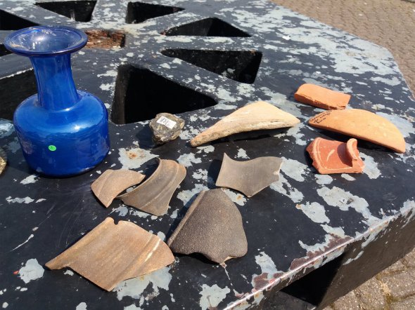 Виявив знахідки чоловік випадково. Рівень води був низьким, а вода - прозорою, так що він зміг протягнути руку вниз і витягнути гарну кобальтово-синю скляну посудину. Ймовірно предмети потрапили в море з римського корабля, що зазнав аварії недалеко від узбережжя графства Кент.