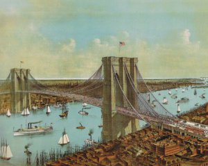 Між двома частинами Нью-Йорка - Мангеттеном та Брукліном, 2 січня 1870 року почали будувати Бруклінський міст довжиною 1825 м. На момент завершення будівництва він був найбільшим підвісним мостом у світі. Першим, у конструкції якого використовувались сталеві троси.