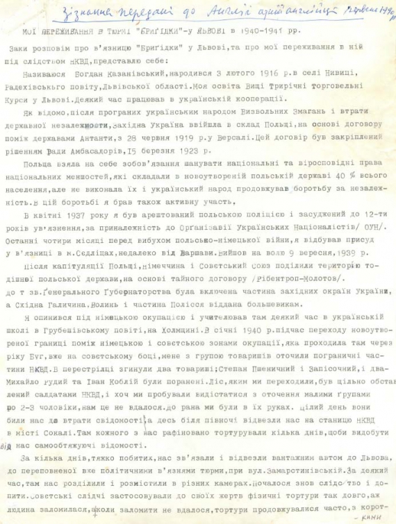На додачу до "розстрільних" списків колекція містить також низку спогадів і листів Богдана і Олени Казанівських – в'язнів тюрми НКВД "Бригідки" у Львові, яким пощастило врятуватися.
