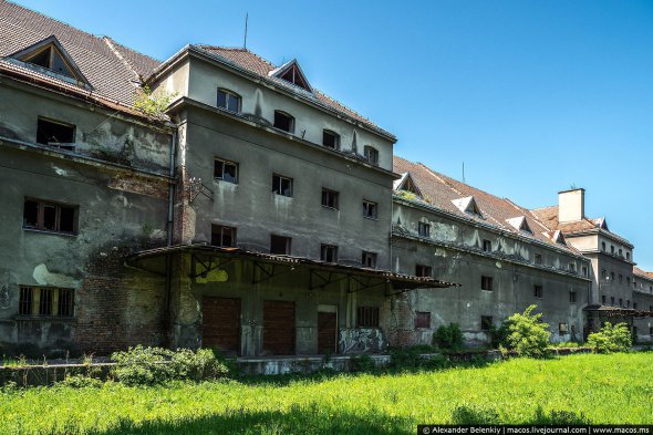Руїни заводу, побудованого в'язнями табору Аушвіц. 1200 "рабів" безкоштовно працювали на виробництві та робили запобіжники для артилерійських снарядів. Після війни територія перейшла до місцевої компанії по ремонту автомобілів, вони змінили дах, але інша частина будівлі залишилася практично такою ж, як і при будівництві.