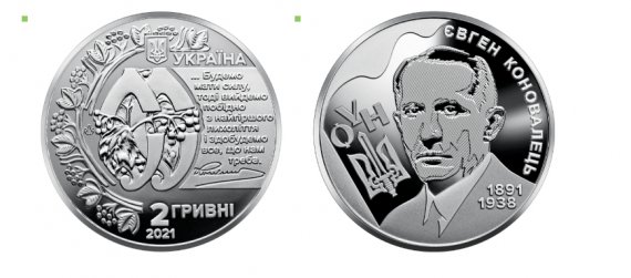 "Монета присвячена військовому і політичному діячеві, особистості, що символізує спадковість української національно-визвольної боротьби, – Євгену Михайловичу Коновальцю", – заявили в НБУ.