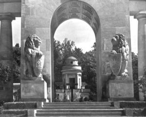 Кам'яні леви знайшли своє місце на Цвинтарі Орлят по обидва боки від Арки Слави. До 1967 року леви стояли непорушно на своєму місці, однак негативне ставлення радянської влади до цього кладовища передвіщало неспокійну долю і для левів.