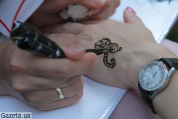 "Існує така традиція як ніч хни. Перед заміжжям влаштовувався дівич-вечір. Варили хну, дівчатам фарбували волосся, ноги і руки. Для чого це робилося? Люди спочатку боялися злих духів, а хні приписували захисну властивість, її вважали сильним оберегом. Я думаю, що навіть на чисто фізичному рівні це можна відчути - кровообіг поліпшується. Дівчата на ніч нареченій в долоньки затискали кашку теплої хни, перебинтовували тканиною. І вона всю ніч спала так. На ранок руки омивали, а долоньки і кінчики пальців залишалися яскраво забарвленими. І коли вона на весіллі танцювала, ці яскраві плями захищали її від вроків. Потім відбулася модернізація - не естетично ходити з червоними долоньками. З арабських країн прийшло прикрашати руки малюнками хною", - розповіла художниця.