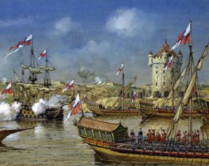 Козацько-московські сили 17 липня 1696 року взяли турецьку фортецю Азов - на лівому березі ріки Дон, за 8 км від впадання її в море.